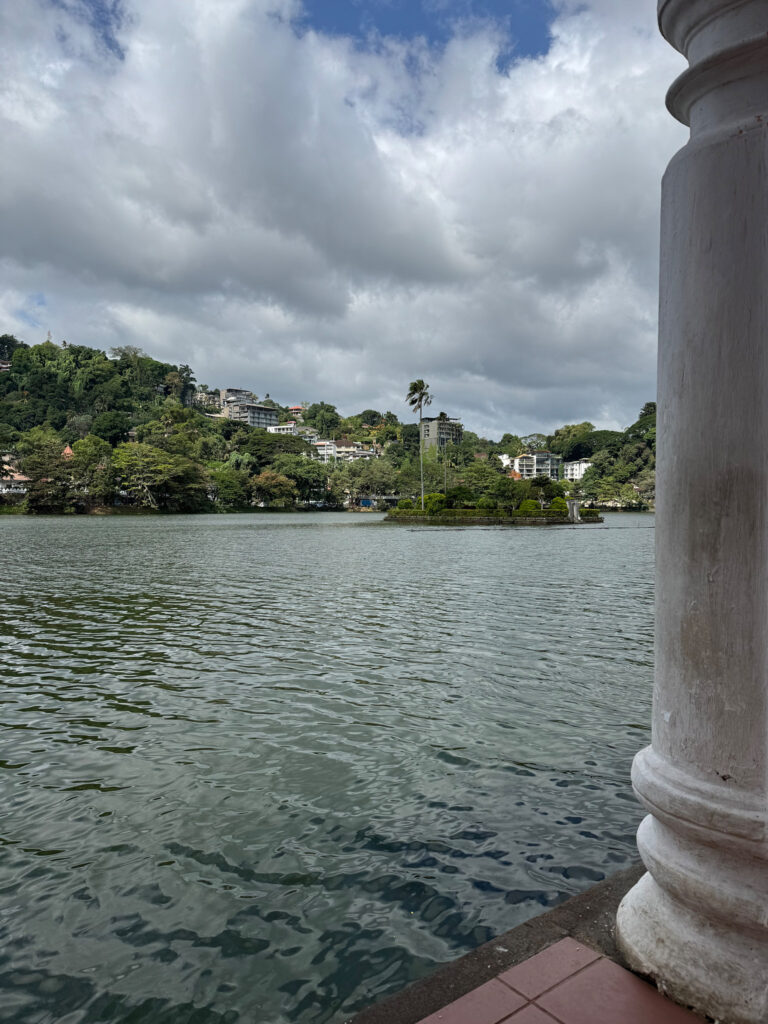 At the centre of Kandy lies the lake, its green surface somehow holding the chaos together. Built by the last Kandyan king, it is a calm heart amidst the noise. Around it, life is everywhere, buses sighing to a stop, school children in crisp white uniforms (the mother in me ever thankful I didn’t have to wash those daily), and people balancing impossible loads on bicycles. Just beyond, the hills rise steep and wild, thick with jungle and the kind of green that hums in the heat and humidity. It’s easy to see why the old kingdoms lasted here, the terrain itself seems to have conspired in their defence.