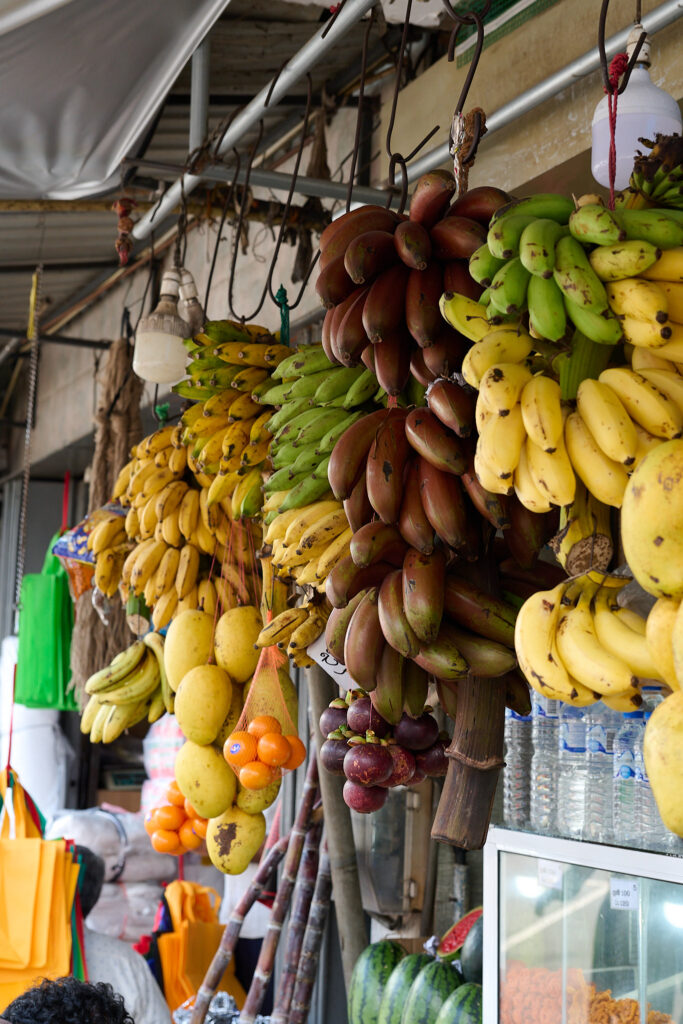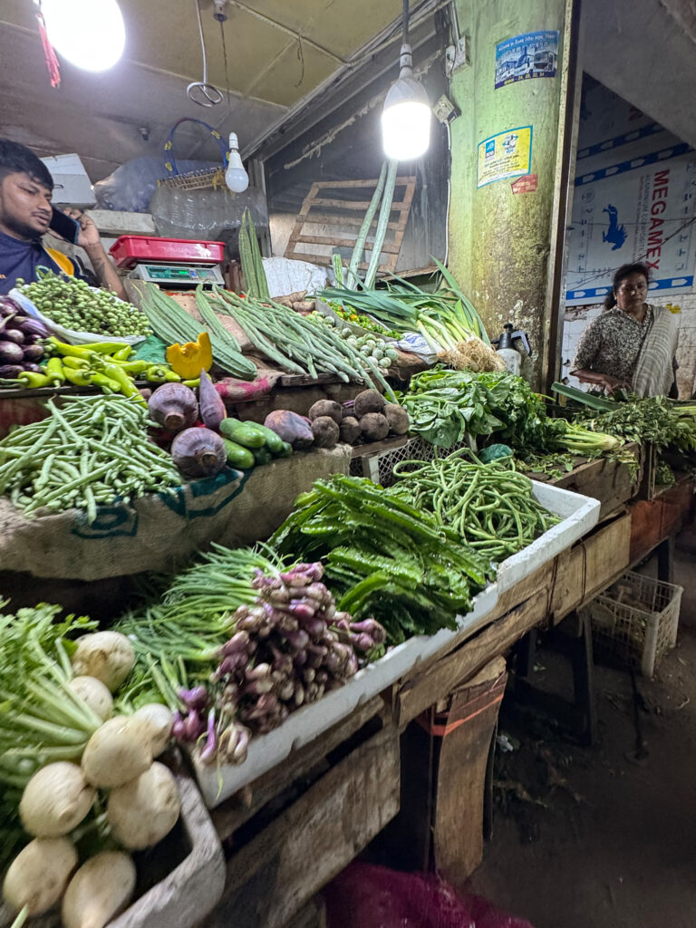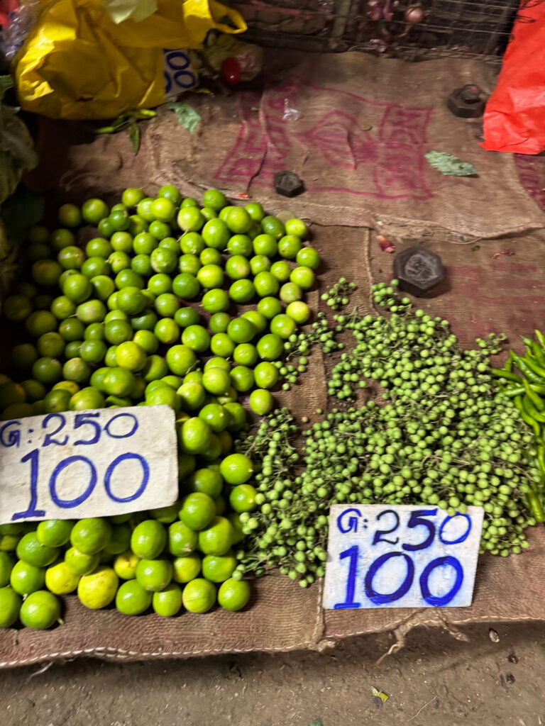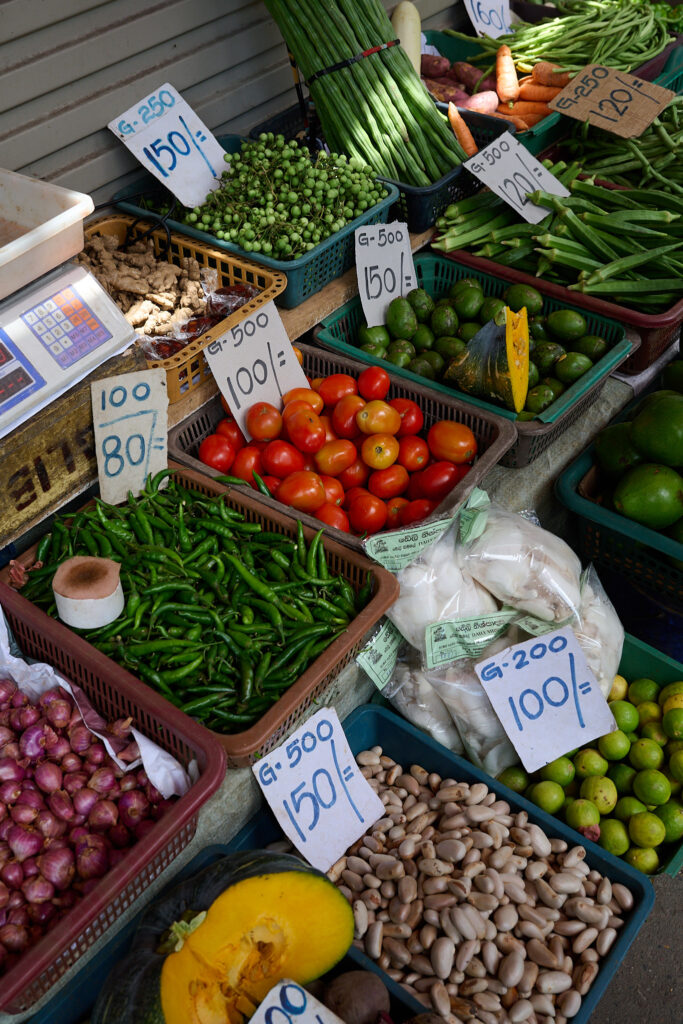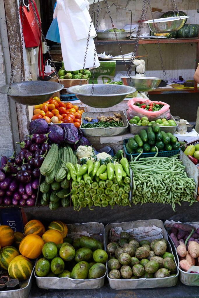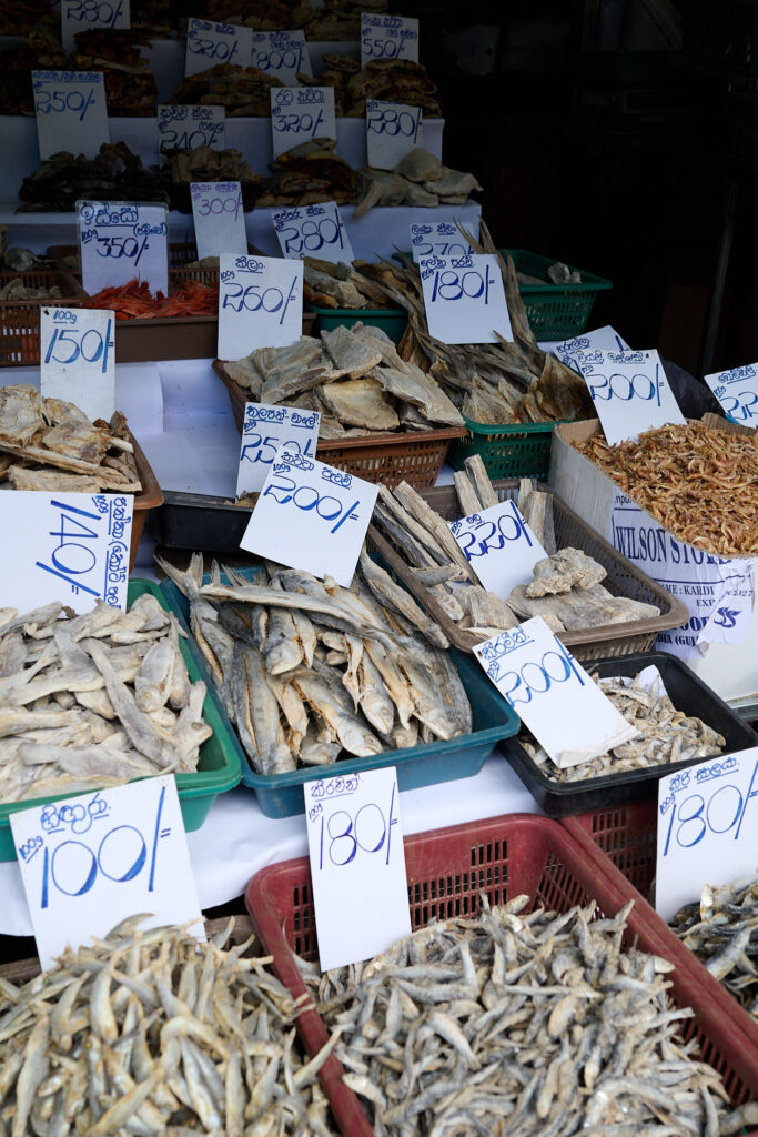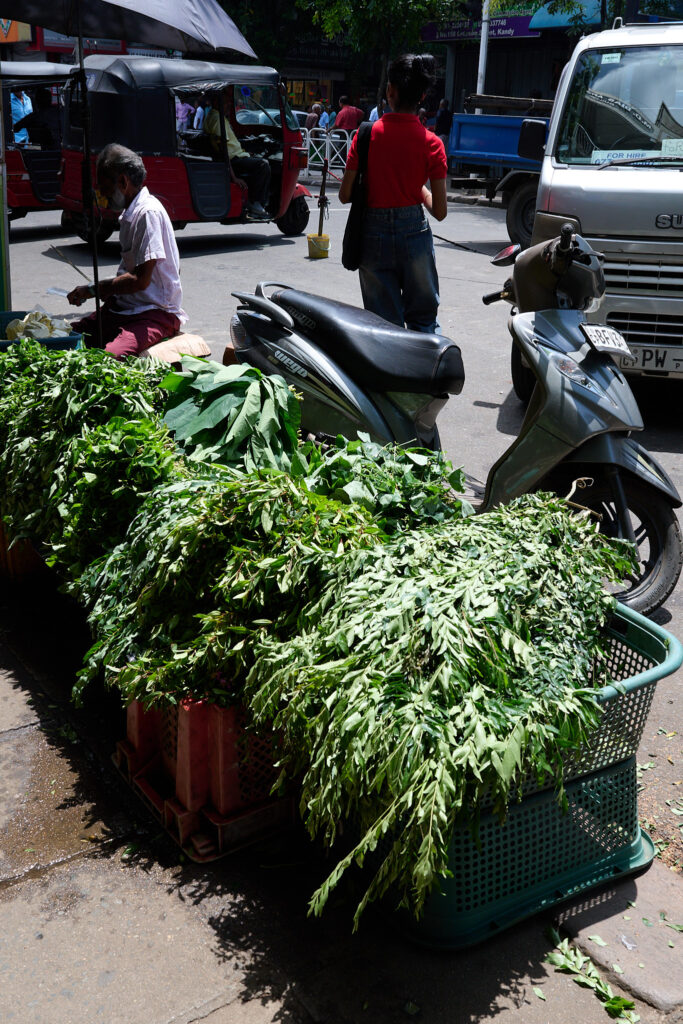 A short detour ended our tour, through Kandy’s biggest market, a sprawling, slightly worn building full of energy. Inside, everything was piled high: chillies in every shade of red, bundles of greens, gourds, bunches of drum sticks (moringa), tropical fruit, and that unmistakable scent of dried fish that finds you before you find it. It was crowded with the after work commuters and quite chaotic, a befitting end to our day!