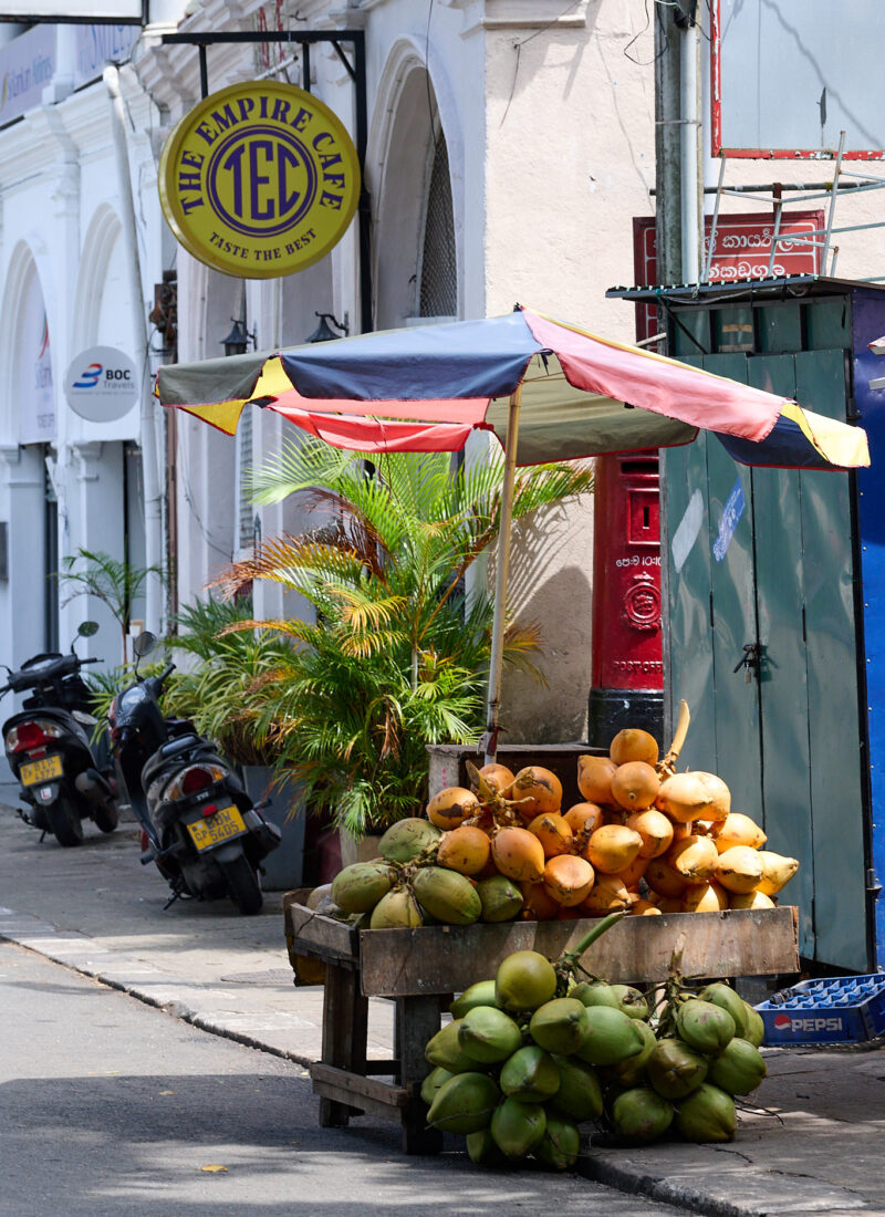 Walking through the streets and chatting with Buddhima about the history of the city, Buddhism, and the food of Sri Lanka, we marvelled at the array of vegetables for sale, fruit I’d never seen before and tasted segments of fresh nectarines and mango bursting with flavor. Vendors selling local spices lined the streets, mountains of curry leaves, pandan and herbs piled high alongside them.