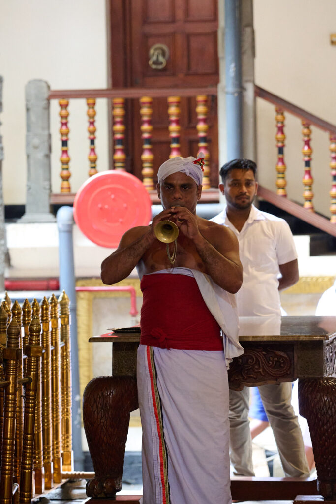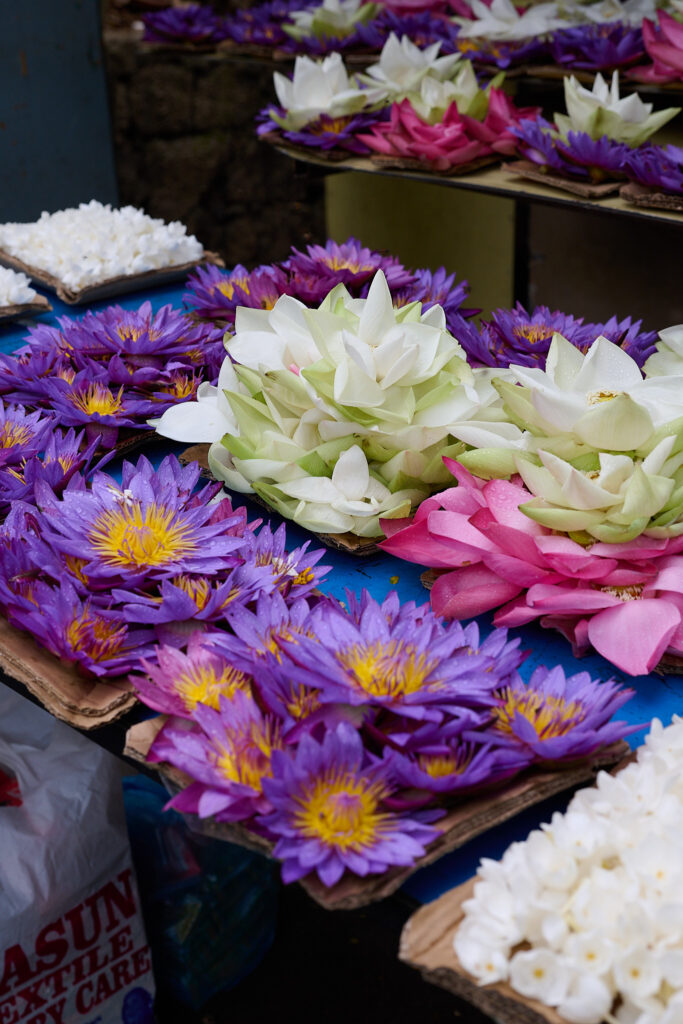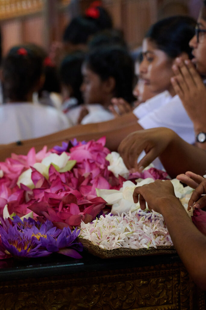 Crowds flock here daily, and outside the gates colourful, scented blooms for offerings are sold for just a few rupees. From the lake, the temple is only a short walk. The air is heavy with incense. Pilgrims and tourists move slowly, barefoot up the stairs, carrying flowers and small offerings, all waiting for the brief moment when the shrine opens and you can glimpse the nested gold caskets that hold the relic. This ceremony is performed three times a day.