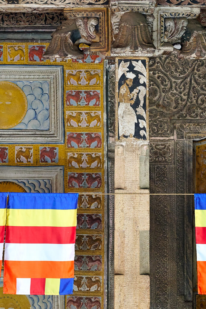 The Temple of the Tooth is the most sacred site in Sri Lanka’s Buddhist culture and home to the annual Esala Perahera Festival. The temple enshrines what is believed to be a tooth relic of the Buddha, smuggled from India to Sri Lanka in the 4th century CE by a princess and her husband, hidden in her hair. It has since been enshrined wherever the island’s kings ruled, finally finding its home in Kandy.